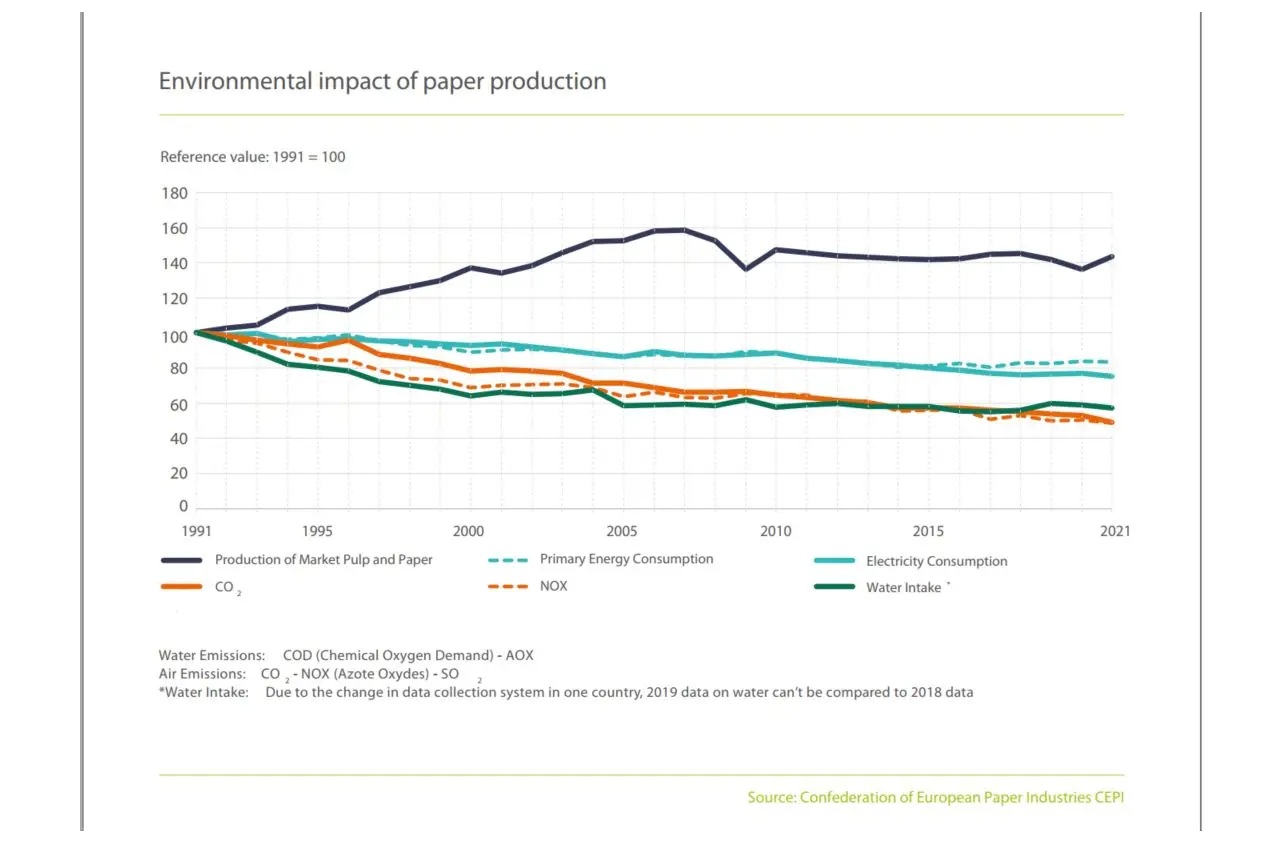 But this assumption is deceptive. In fact, global paper consumption is growing relentlessly. The World Wide Fund For Nature (WWF) reports that around 130 million tons of paper were produced and consumed around the globe in 1970. By 2005, this number had risen to 367 million tons, and by 2019 to 415 million tons. And there have been no indications of a decline since then.